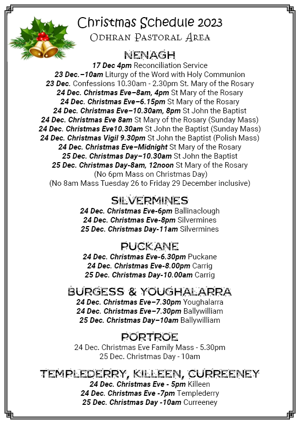 Please join us in person or online from 12 noon at St Mary of the Rosary Church, Nenagh.