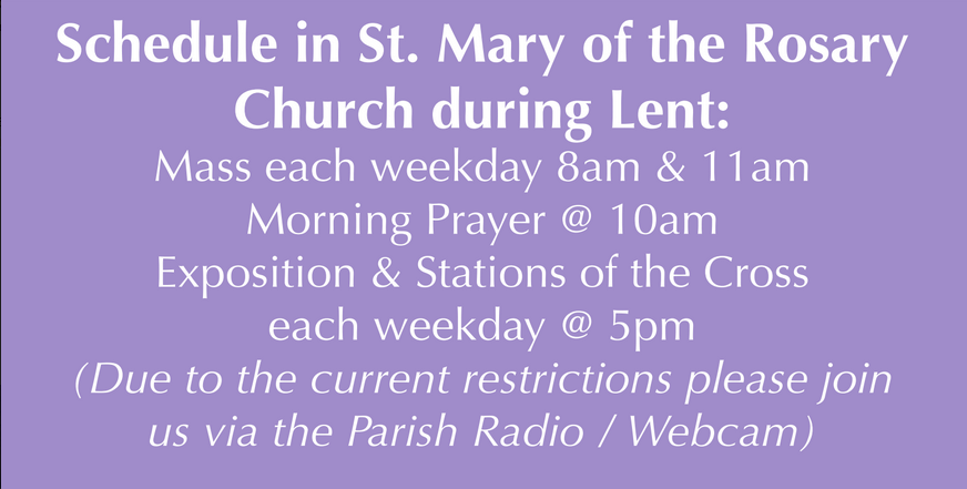 Please join us via the Parish Radio (106.2FM) and/or the Parish Webcam. Please note that due to current restrictions no congregations are allowed during ceremonies.