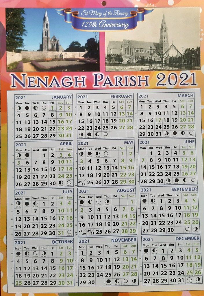 The must-have item of this year has been released. Yes, the Nenagh Parish 2021 Calendar has been launched and is now available in both churches outside Mass times. Get in, grab a copy, take a couple for your neighbours and friends who may not be venturing out right now. To the volunteer community groups supporting those not leaving the house, you know what to do! And the best news of all…it’s free!!